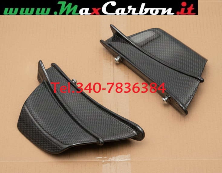 Realizzate in fibra carbonio , trama Plain , finitura carbonio a scelta tra lucido oppure opaco . Possibilità di scegliere anche la trama del carbonio , se Plain o Twill !